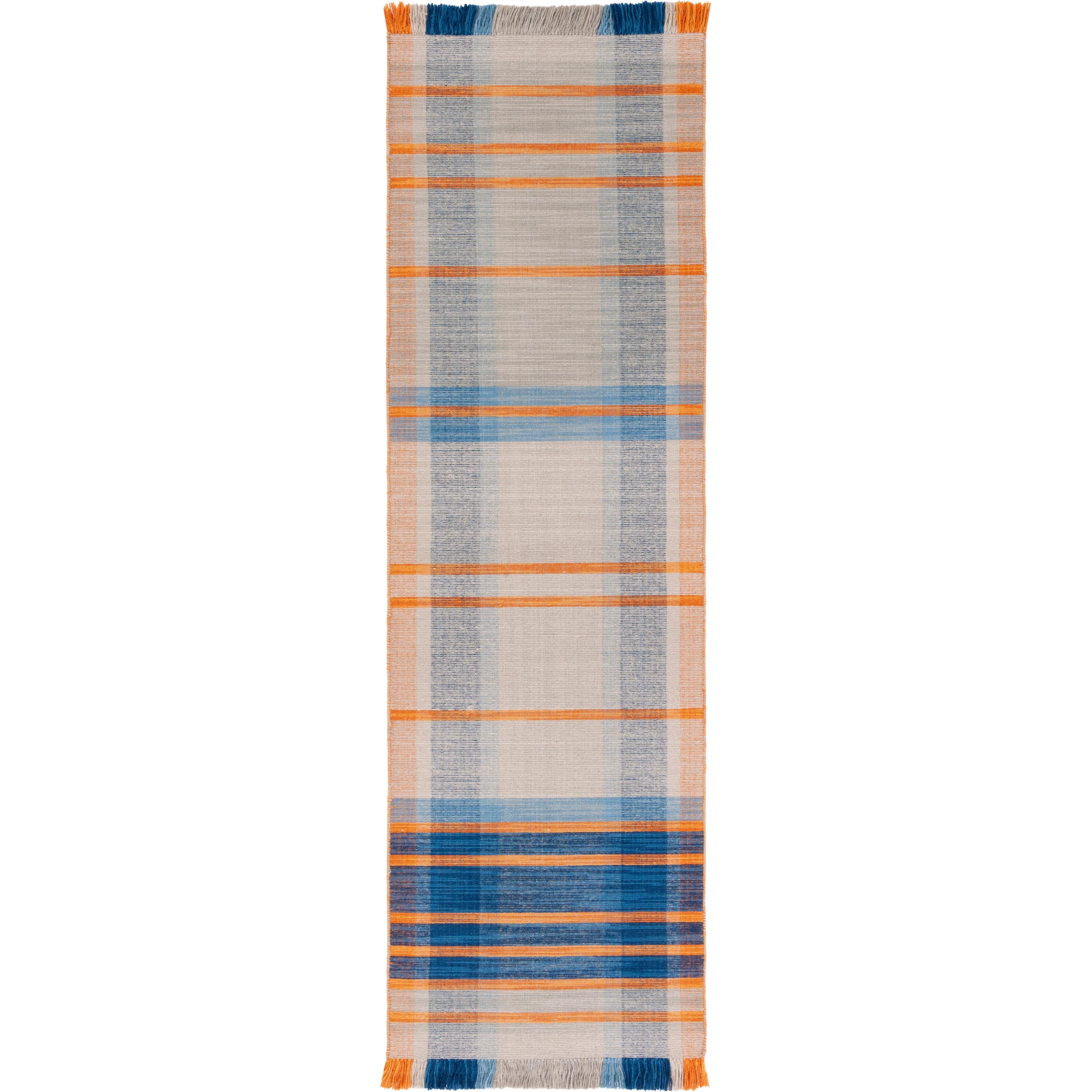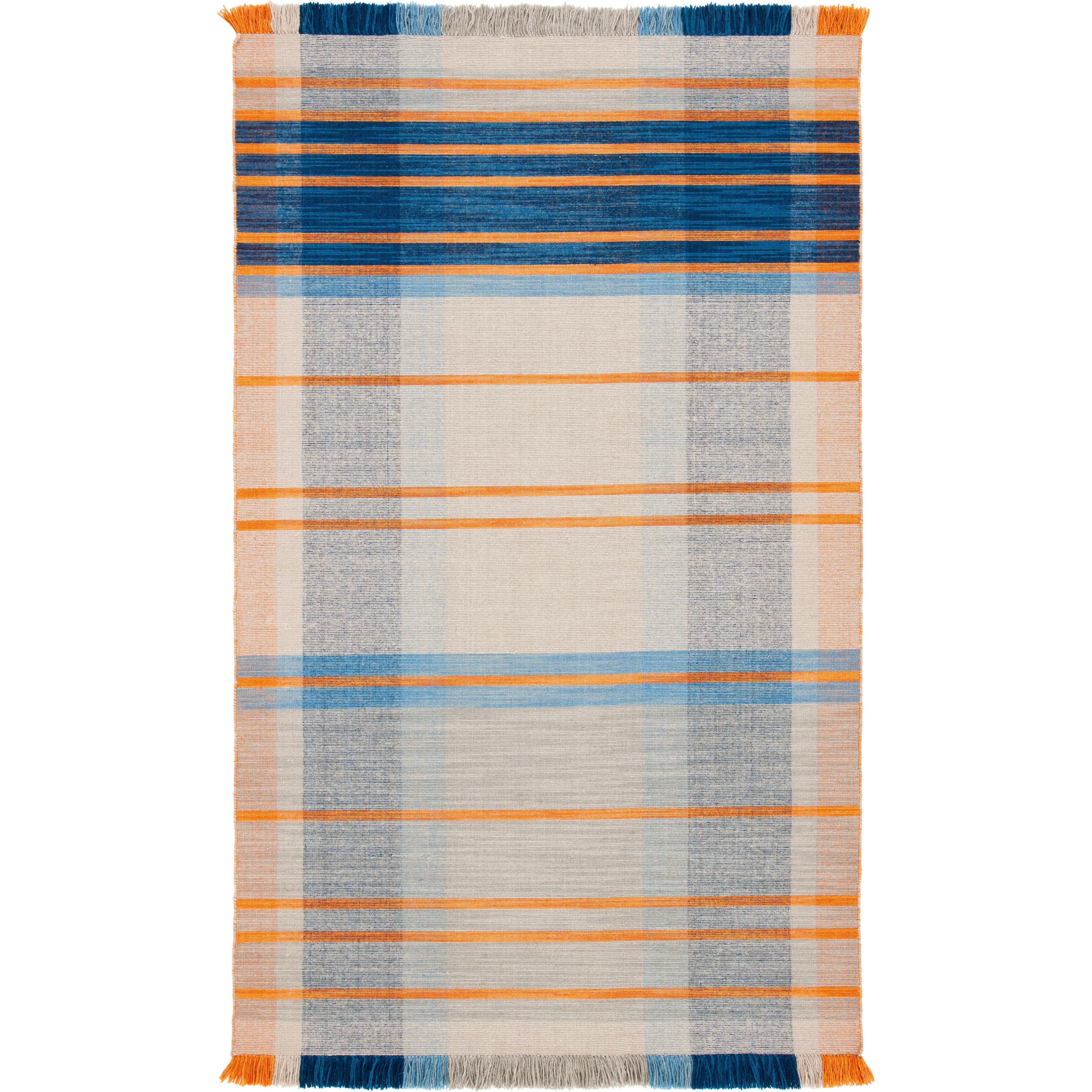 Elevate your home decor with the Striped Kilim STK701B rug, blending rustic-chic aesthetics with a Southwestern twist. The warm, multi-colored stripes and kilim flat weave bring a touch of tradition to any space, from California to Santa Fe. Crafted from pure wool, this collection offers durability and style for a fresh update in your room. With an approximate thickness of 0.25 inches, this rug adds texture and warmth to your floors.