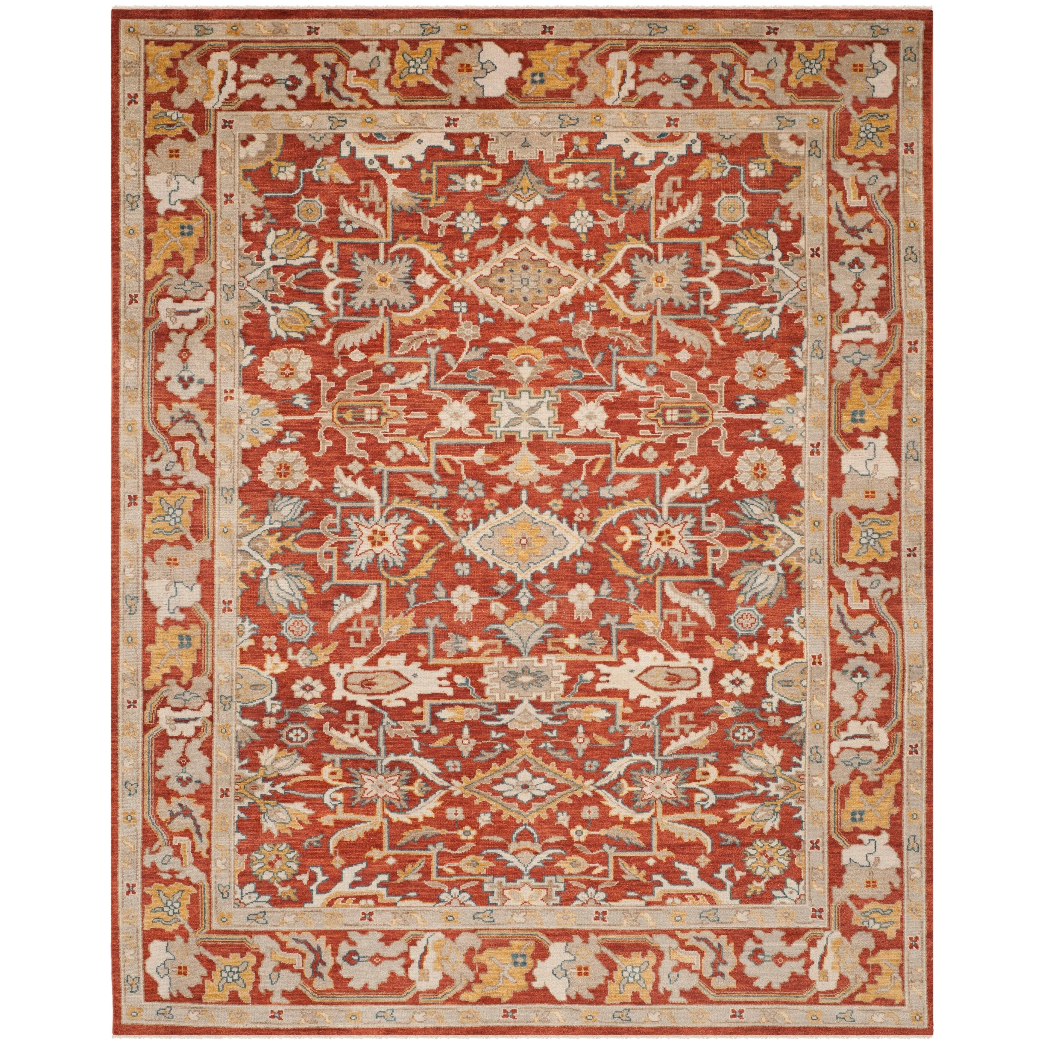 exquisite Sultanabad SUL1070A Rust rug from Safavieh's renowned collection. This stunning piece draws inspiration from timeless contemporary designs and is meticulously hand-knotted using the finest quality wool. The rich rust color adds warmth and elegance to any space, making it a versatile and sophisticated addition to your home decor.