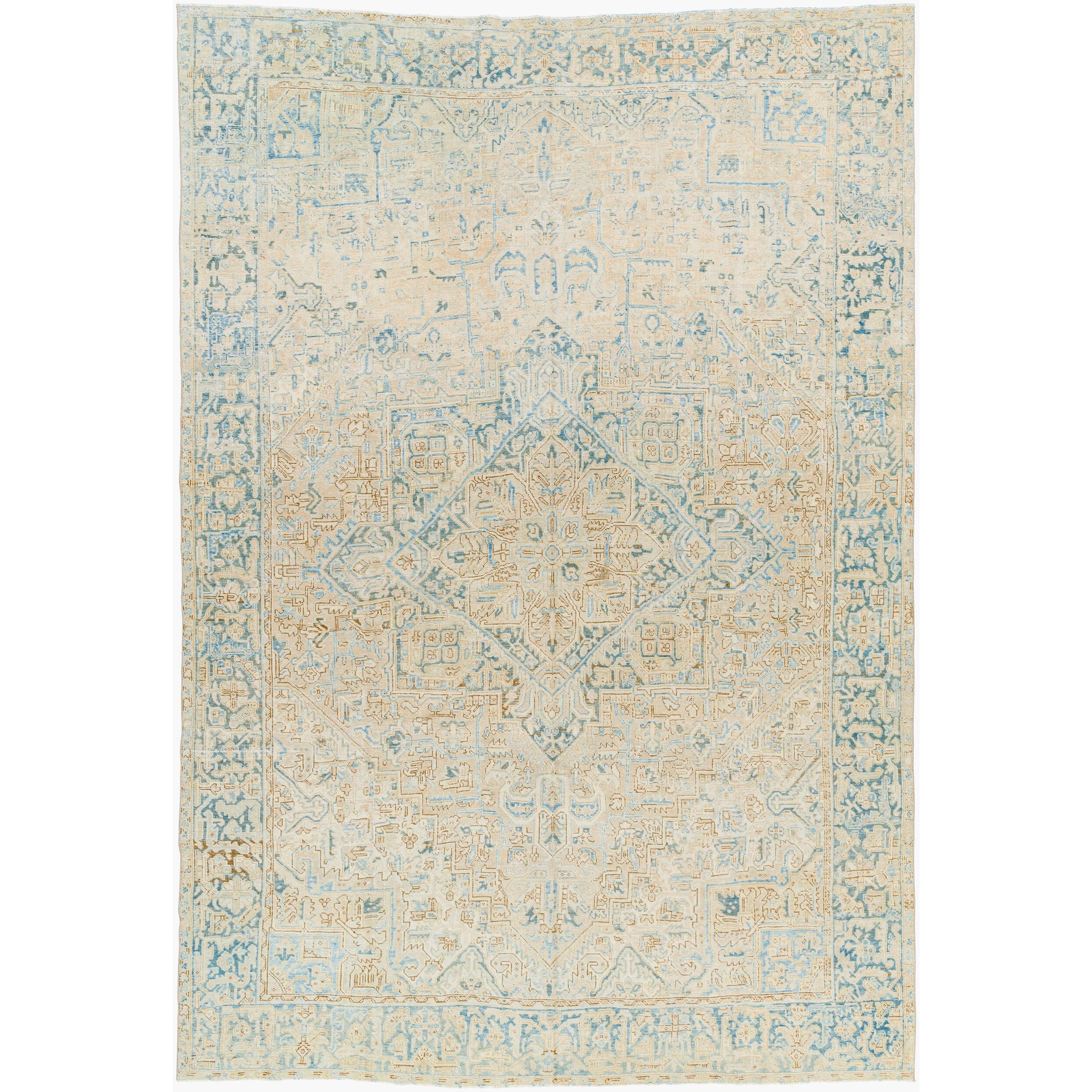 Detailed Colors: The prominent colors in this rug are: - Sandstone - Sky Blue - Ivory - Slate Gray