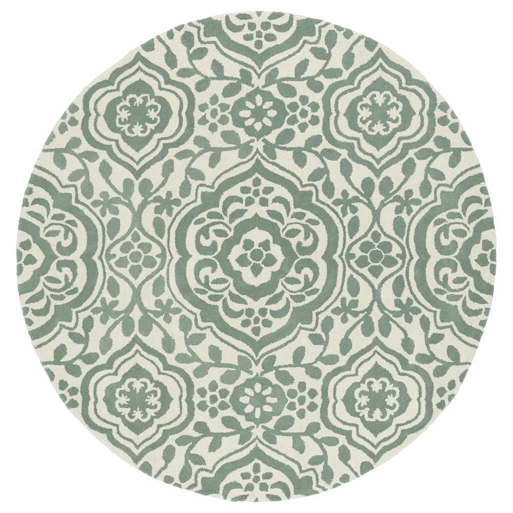 Tara Rounds EVL04 88 Mint rug from the exquisite Tara Rounds Collection. Embodying elegant design in a circular shape, these rugs bring a timeless and versatile appeal to any space. Hand-tufted by skilled artisans in India, each rug is crafted using premium 100% imported wool for luxurious softness and durability.
