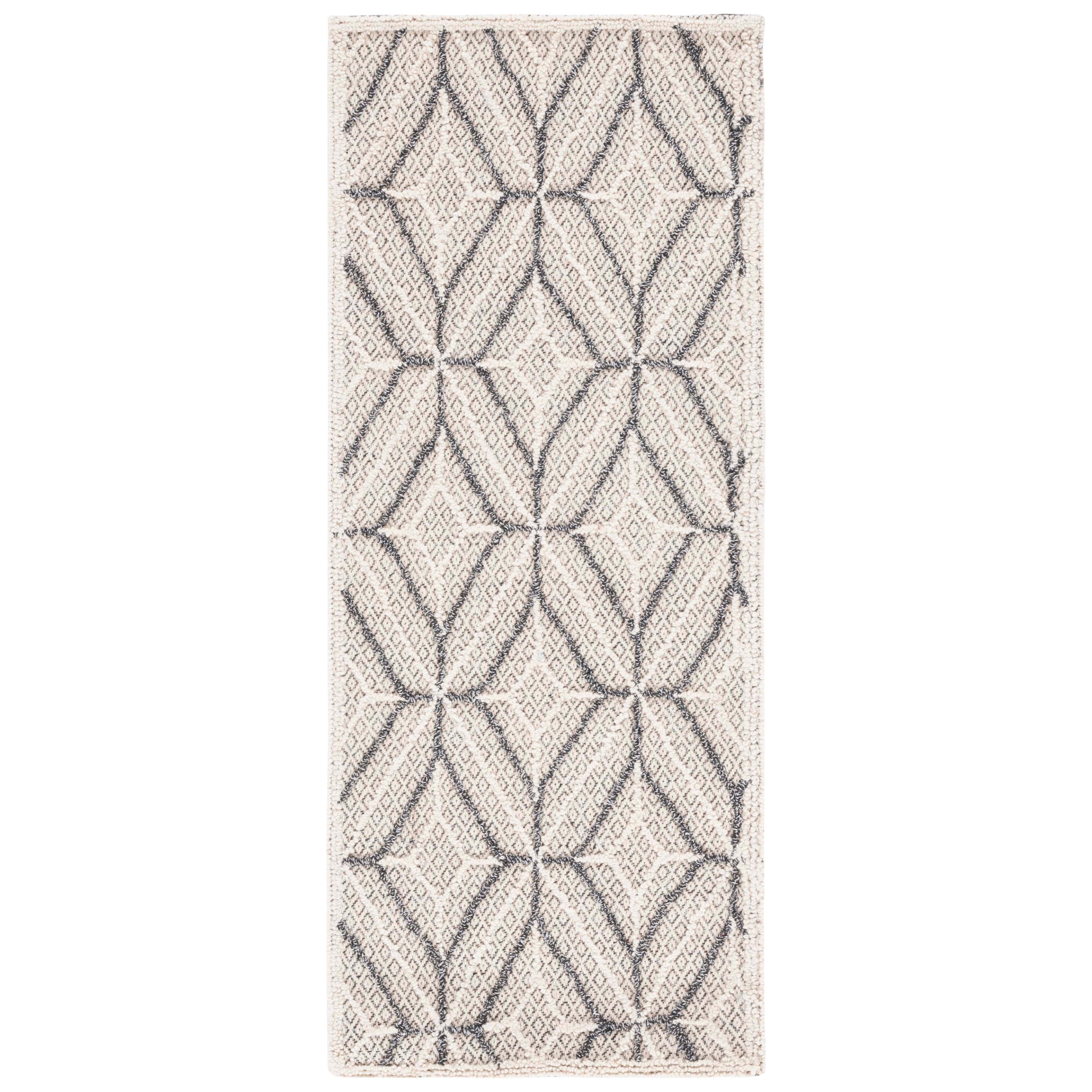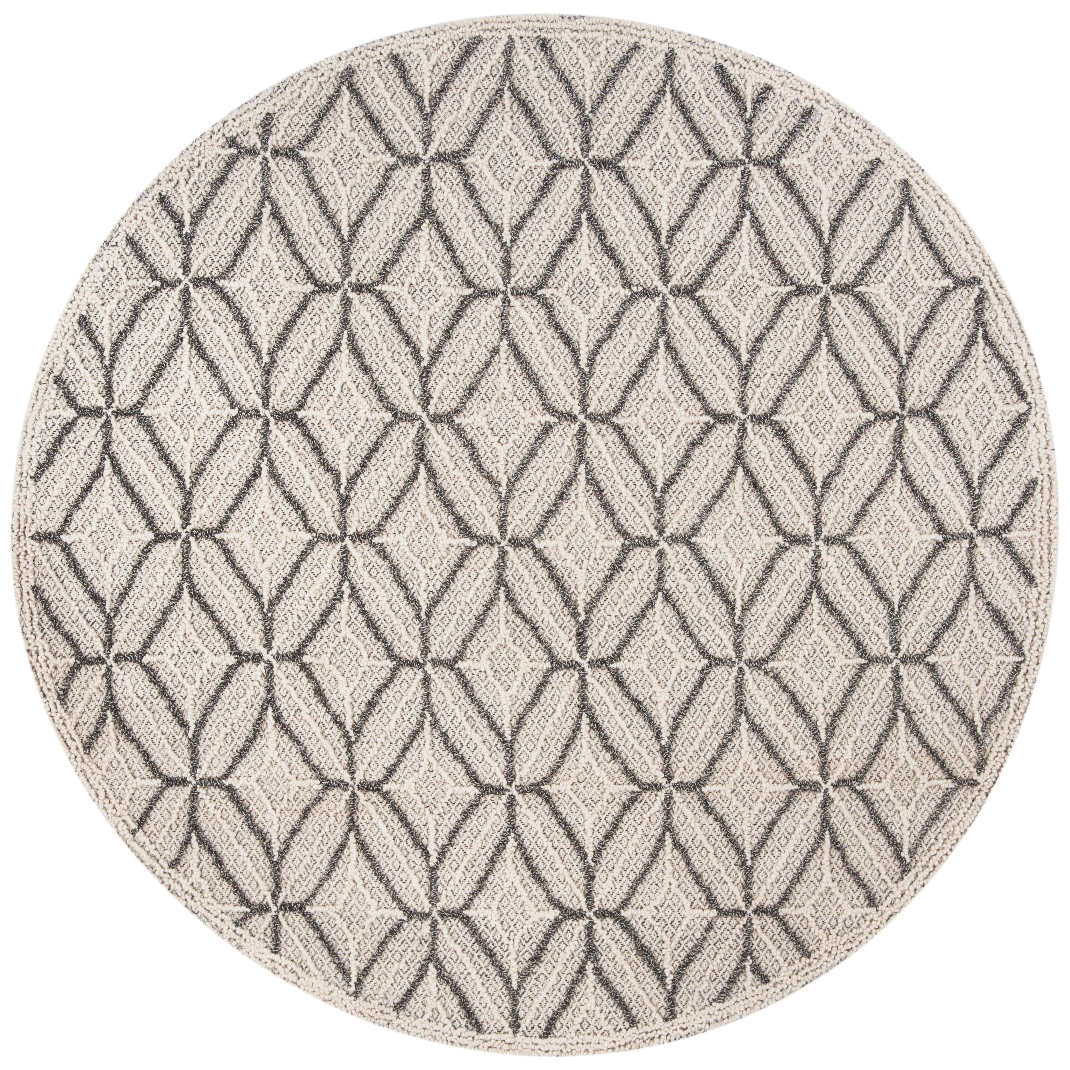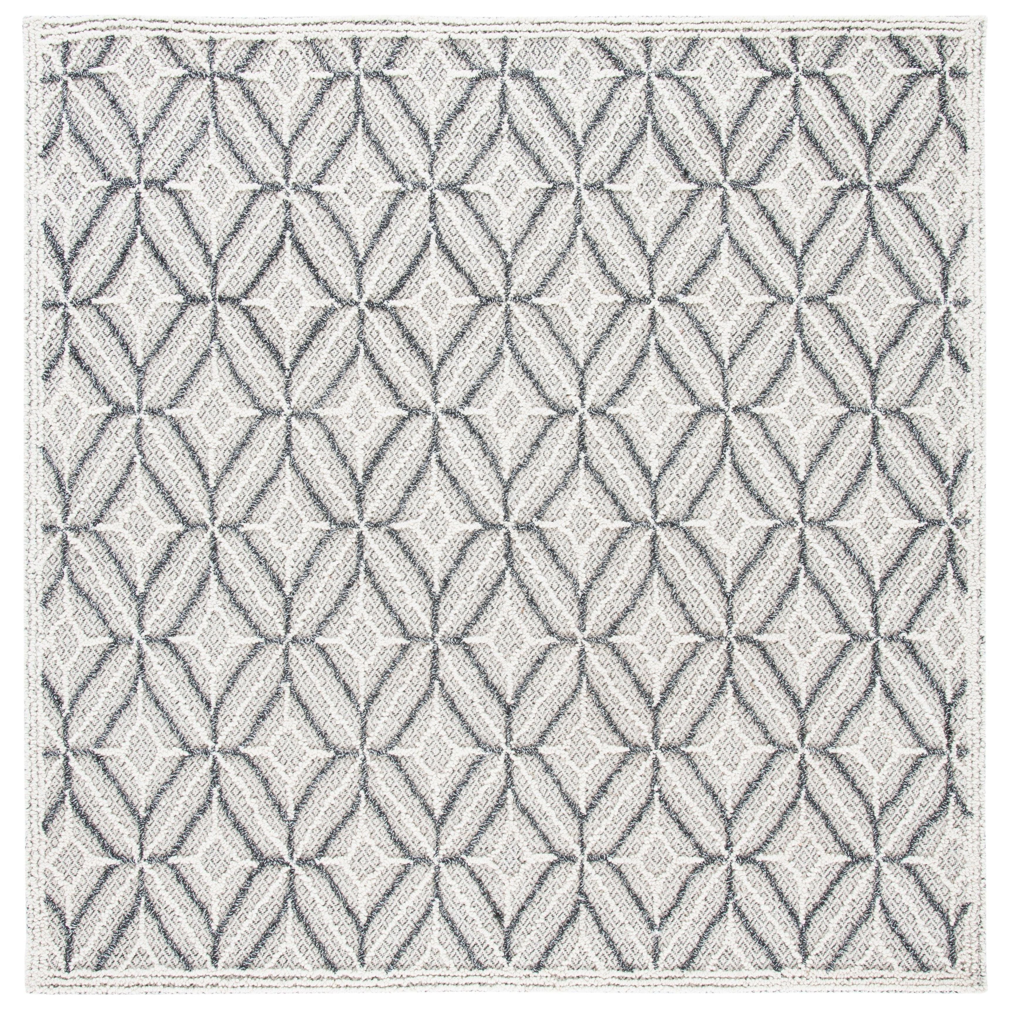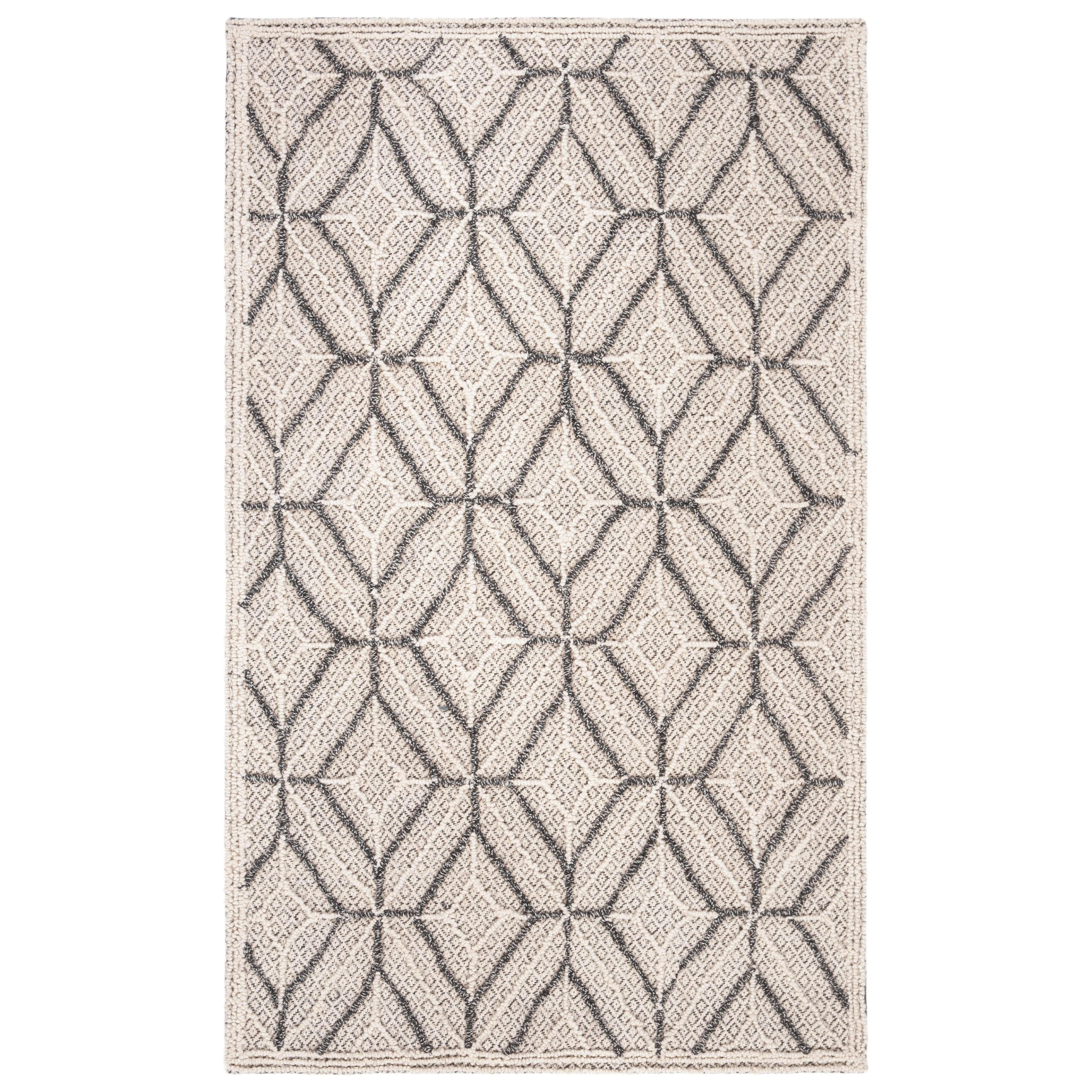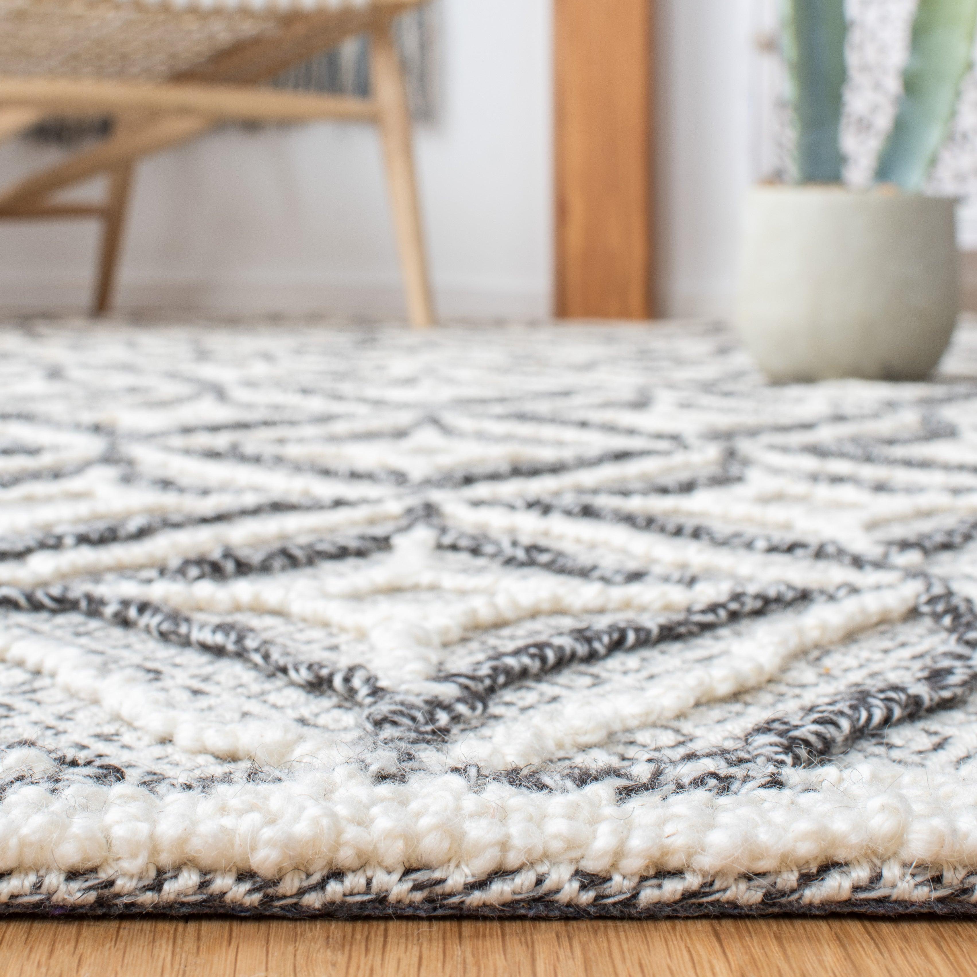 Elevate your living space with the exquisite Trace TRC212F area rug from SAFAVIEH. Crafted to delight the senses, this luxurious rug boasts intricate raised patterns and textures that add depth and sophistication to any room. The understated color palette accentuates the elegant design, with looped patterns contrasting beautifully against the solid field. Hand-tufted from pure wool, Trace offers both comfort underfoot and a cozy warmth to your home decor.