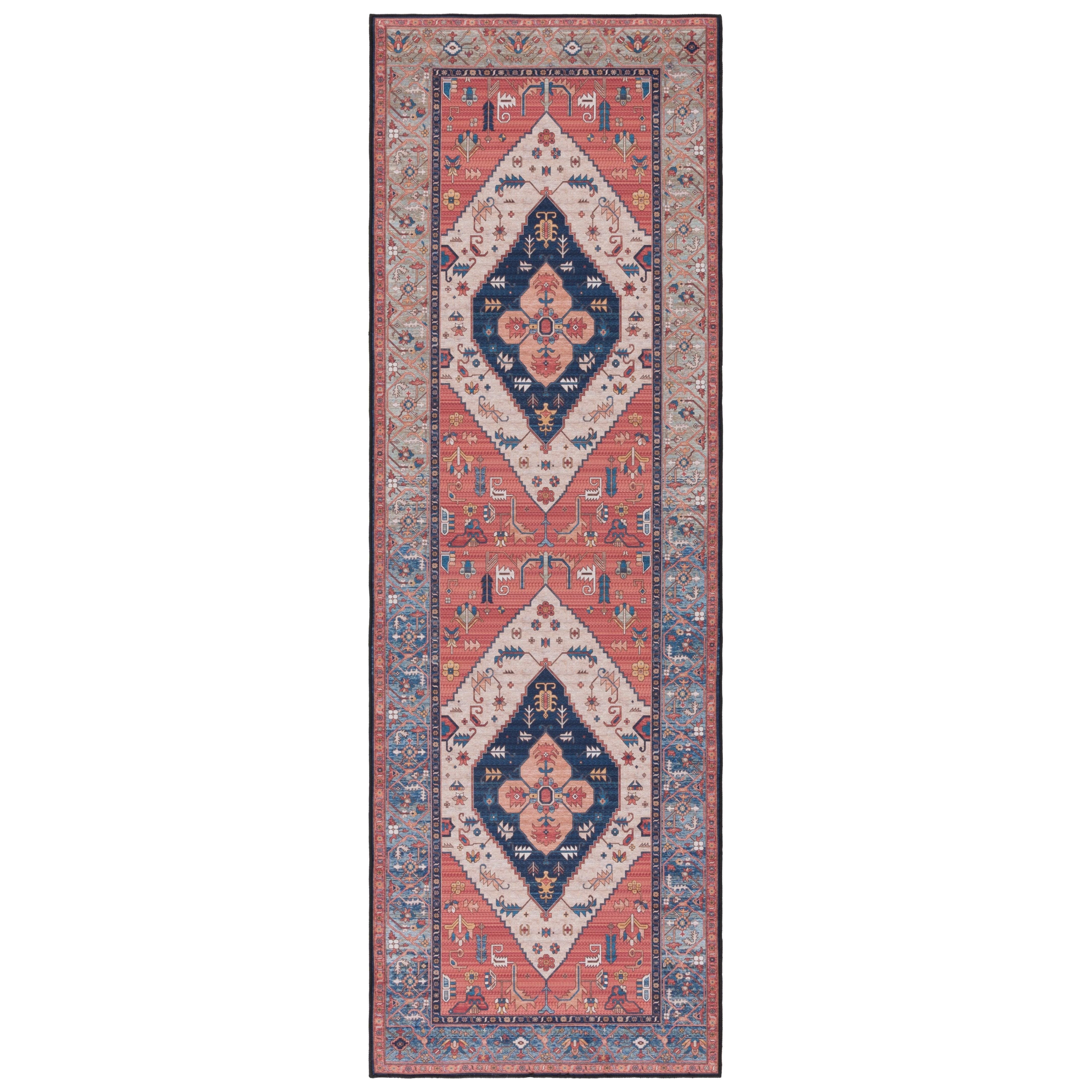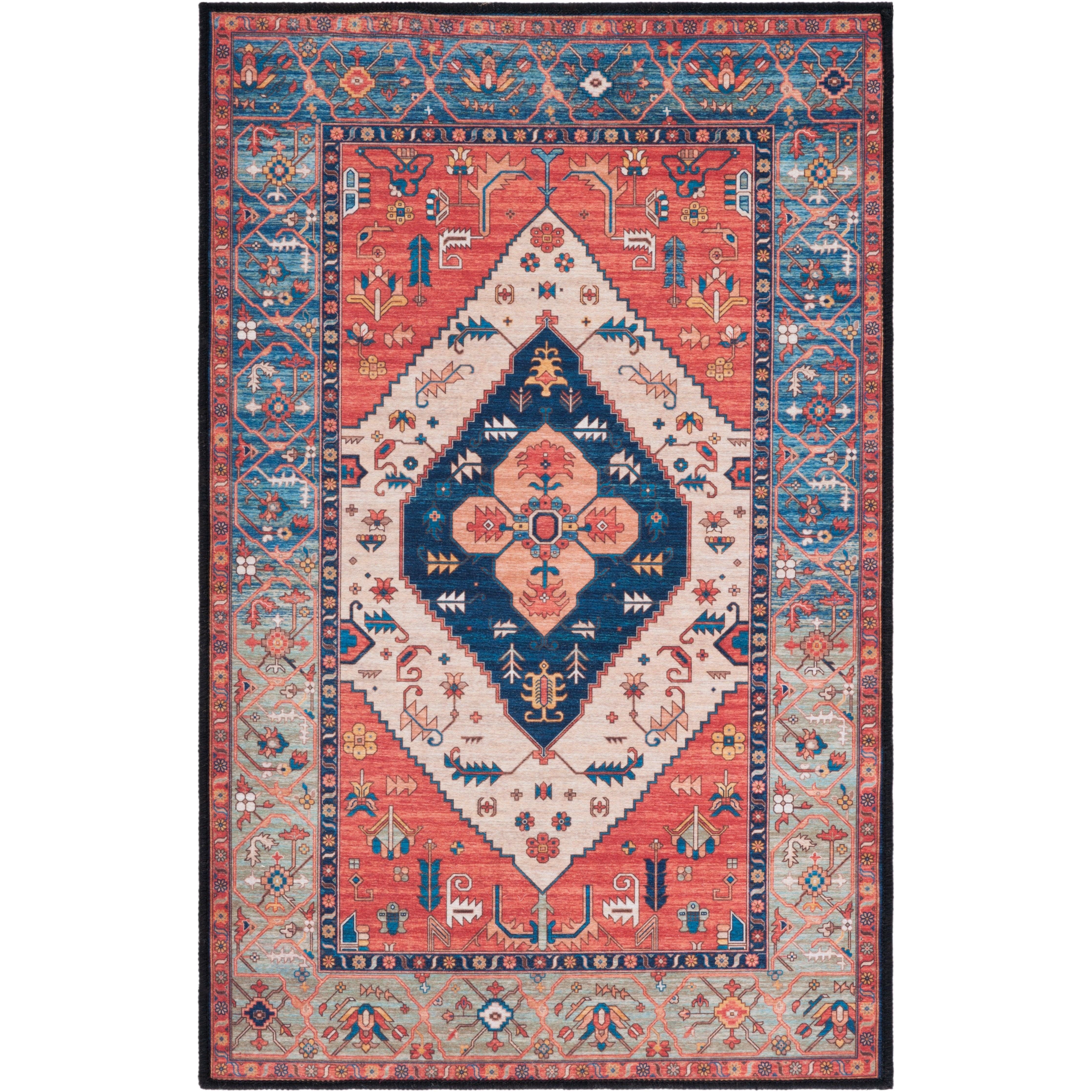 Tucson TSN153P rug from the Tucson Collection, a perfect blend of beauty and convenience for your living space. Featuring elegant traditional patterns with a modern twist, this rug is crafted with easy-care machine washable fibers and a non-slip backing for added safety. Ideal for various rooms in your home such as the bedroom, dining room, living room, kid's room, or home office, this rug boasts an approximate thickness of 0.25 inches.