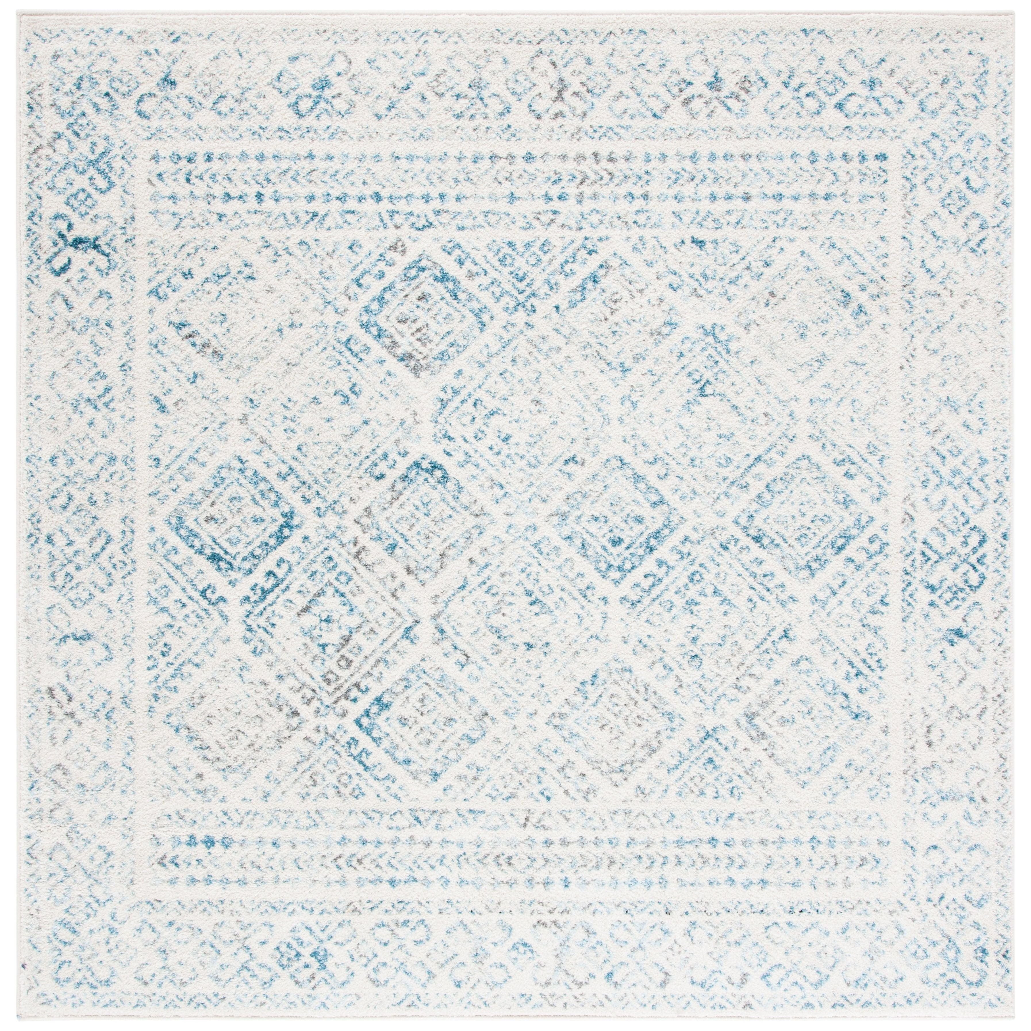 Tulum TUL264B rug from the SAFAVIEH Collection, where soft hues blend seamlessly with rustic patterns to create a refreshing and stylish display. These boho-chic area rugs offer a modern twist on traditional craft art designs, infusing any room with warmth and character. Crafted from soft synthetic yarns, the Tulum rugs provide both a unique aesthetic and a comfortable feel underfoot, with an approximate thickness of 0.4 inches.
