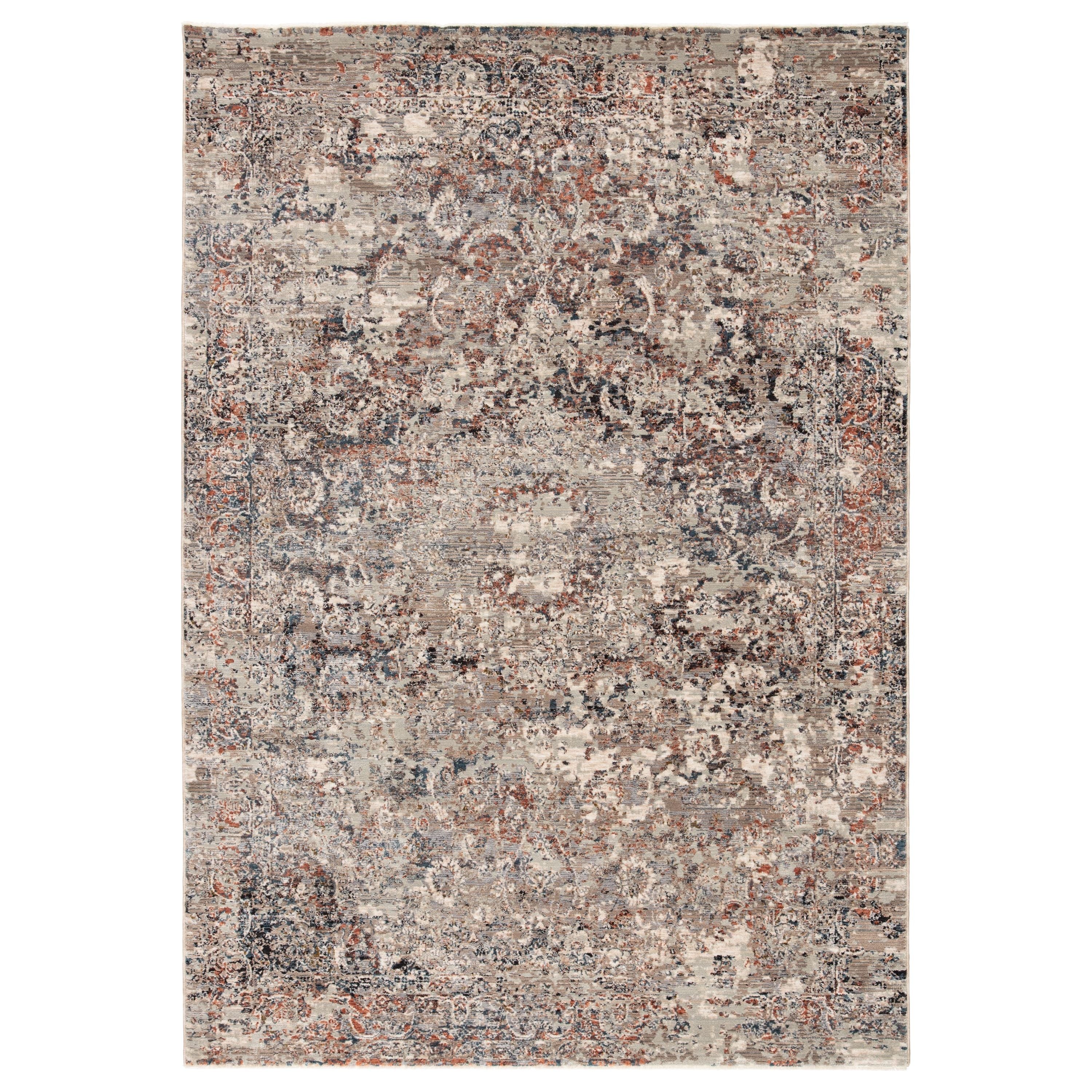 Valentia VLN02 Niran rug, a stunning addition to any space with its blend of bold colors and classic charm. This rug from the Valentia collection effortlessly infuses a touch of timeless elegance into your decor. The Niran rug showcases an exquisite erased center medallion pattern in shades of gray, cream, tan, red, and deep blue.