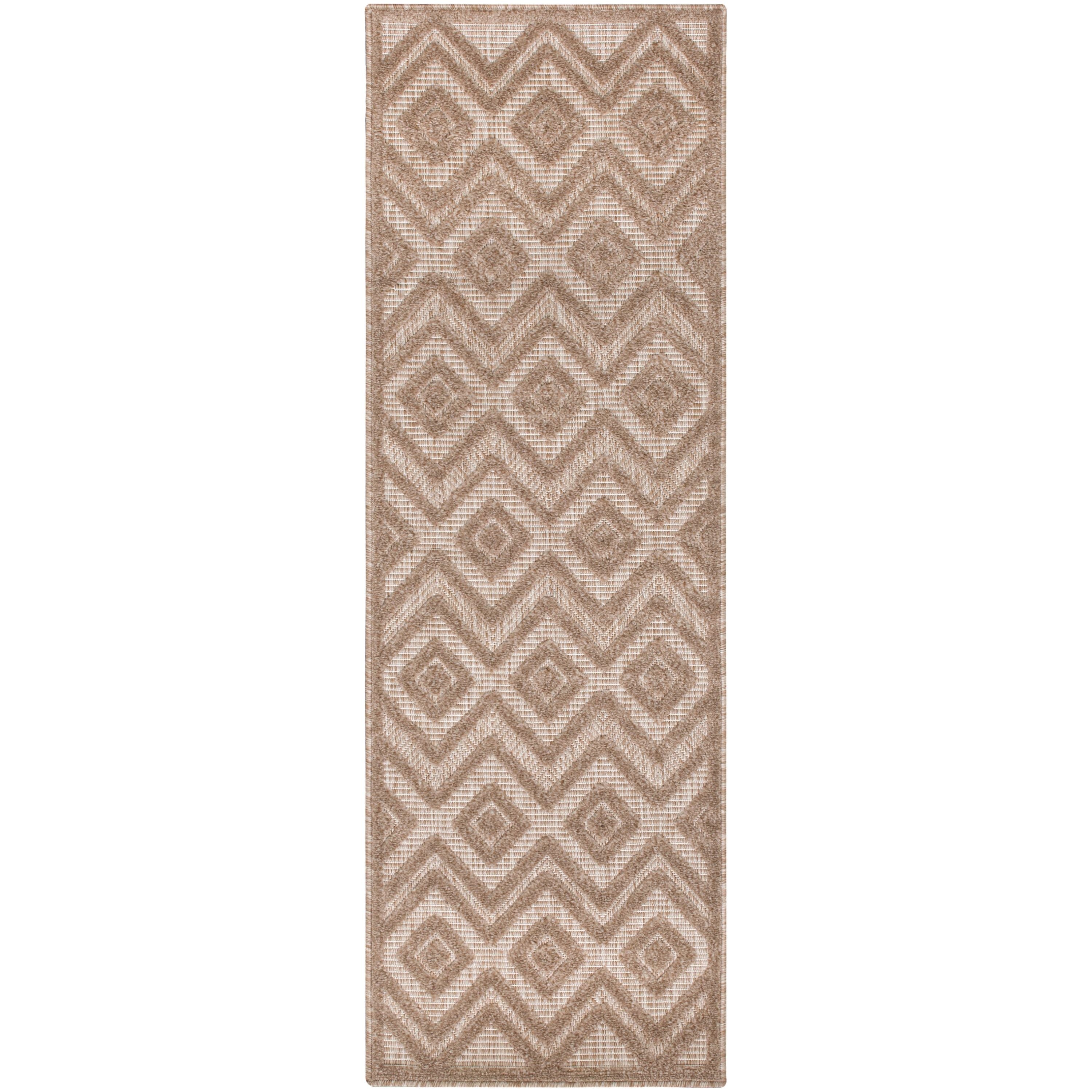 Versatile NRV01 Natural Beige rug from Nourison's collection, a versatile addition to any indoor or outdoor area. The taupe color of this rug adds warmth and style to your space, while the raised diamond design creates a modern and inviting look. Made with durable and easy-to-clean fibers, this machine-made rug is perfect for high-traffic areas inside your home and can withstand all seasons outdoors.