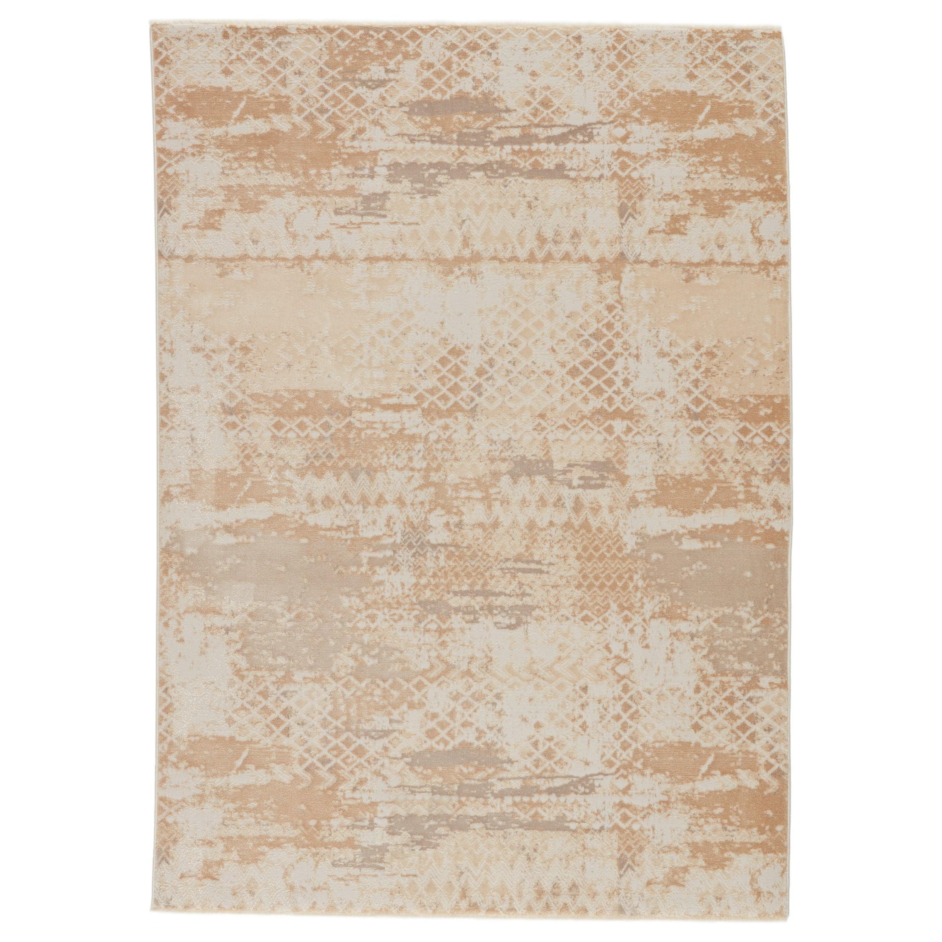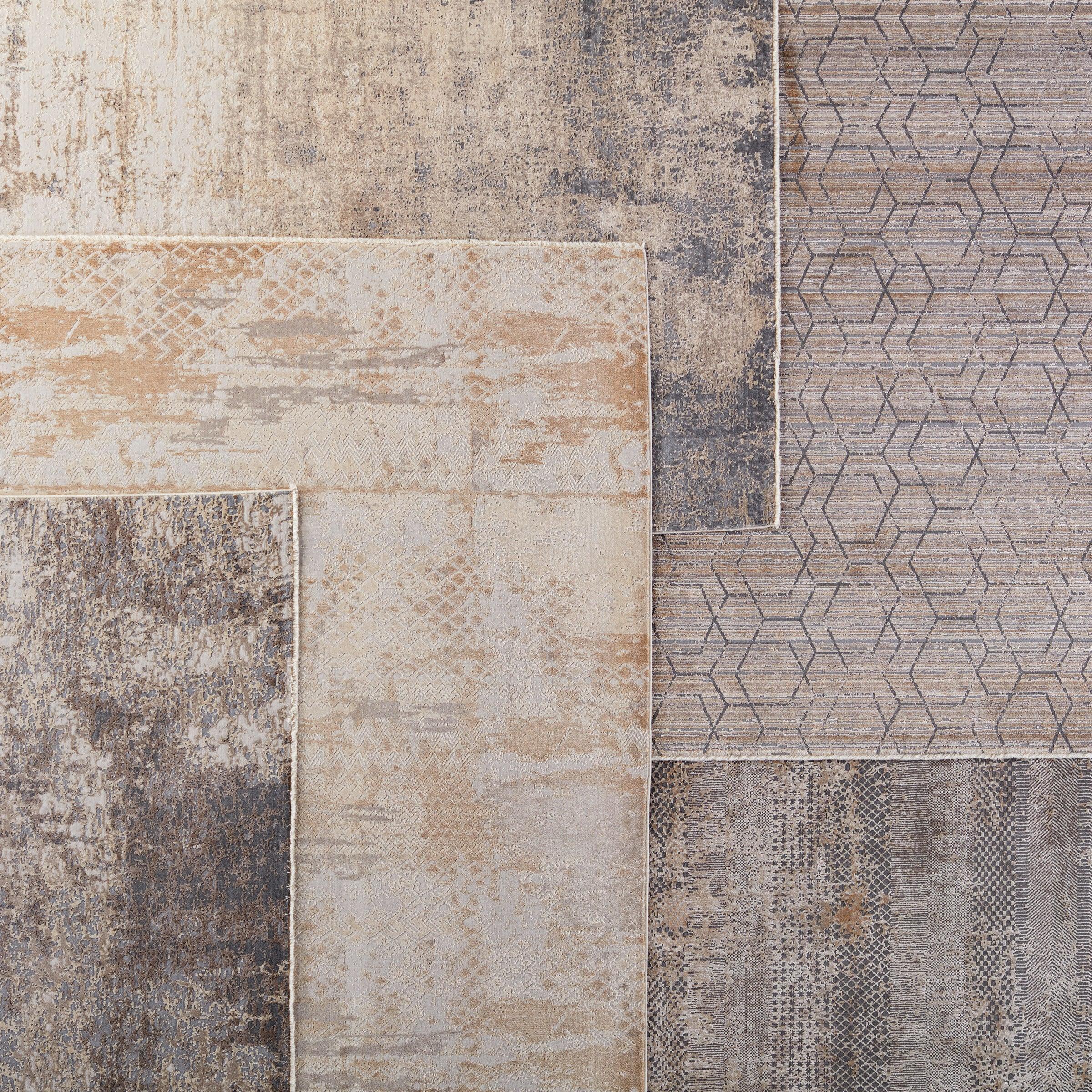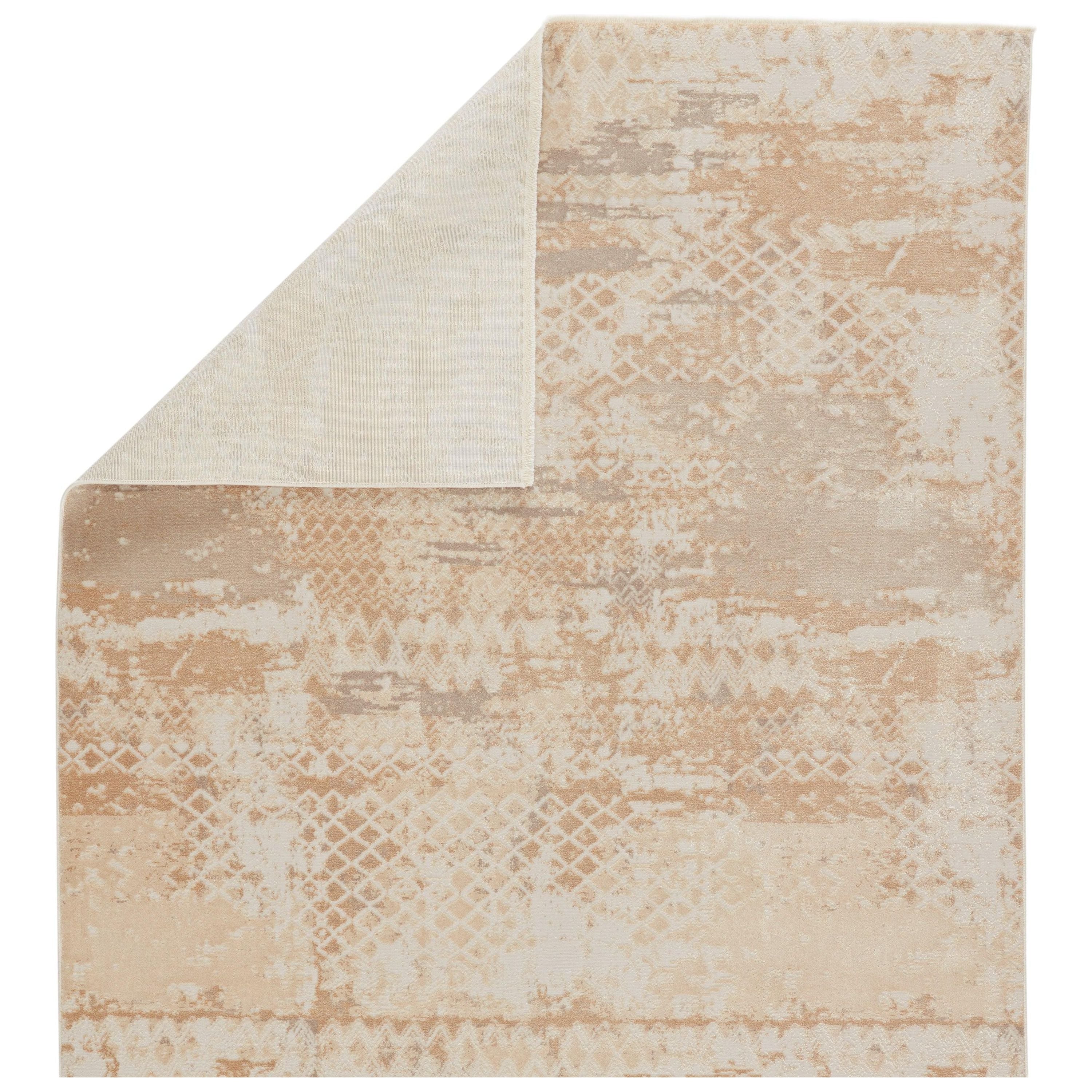 Discover the exquisite Vienne VNE15 Azami rug from the elegant Vienne collection. Effortlessly chic, this rug embodies the popular blanc de blanc aesthetic for a vintage touch. The Azami design features a charming distressed mosaic pattern in inviting shades of gold, white, and cream, complemented by hints of metallic sheen. Luxuriously soft and lustrous, this rug mimics the classic allure of a Turkish hand-knotted piece while being crafted from a durable blend of polyester and viscose through power-loomed techniques.
