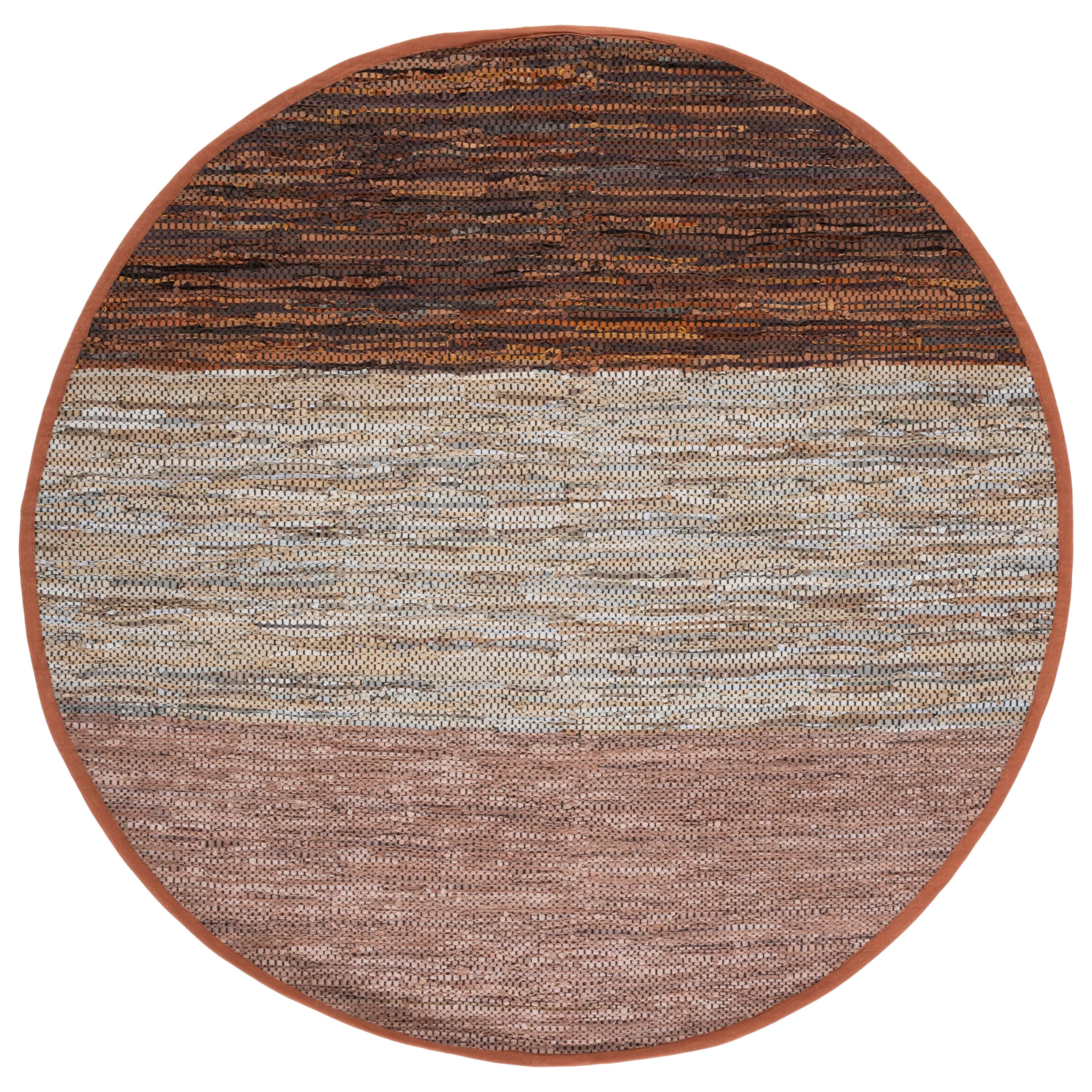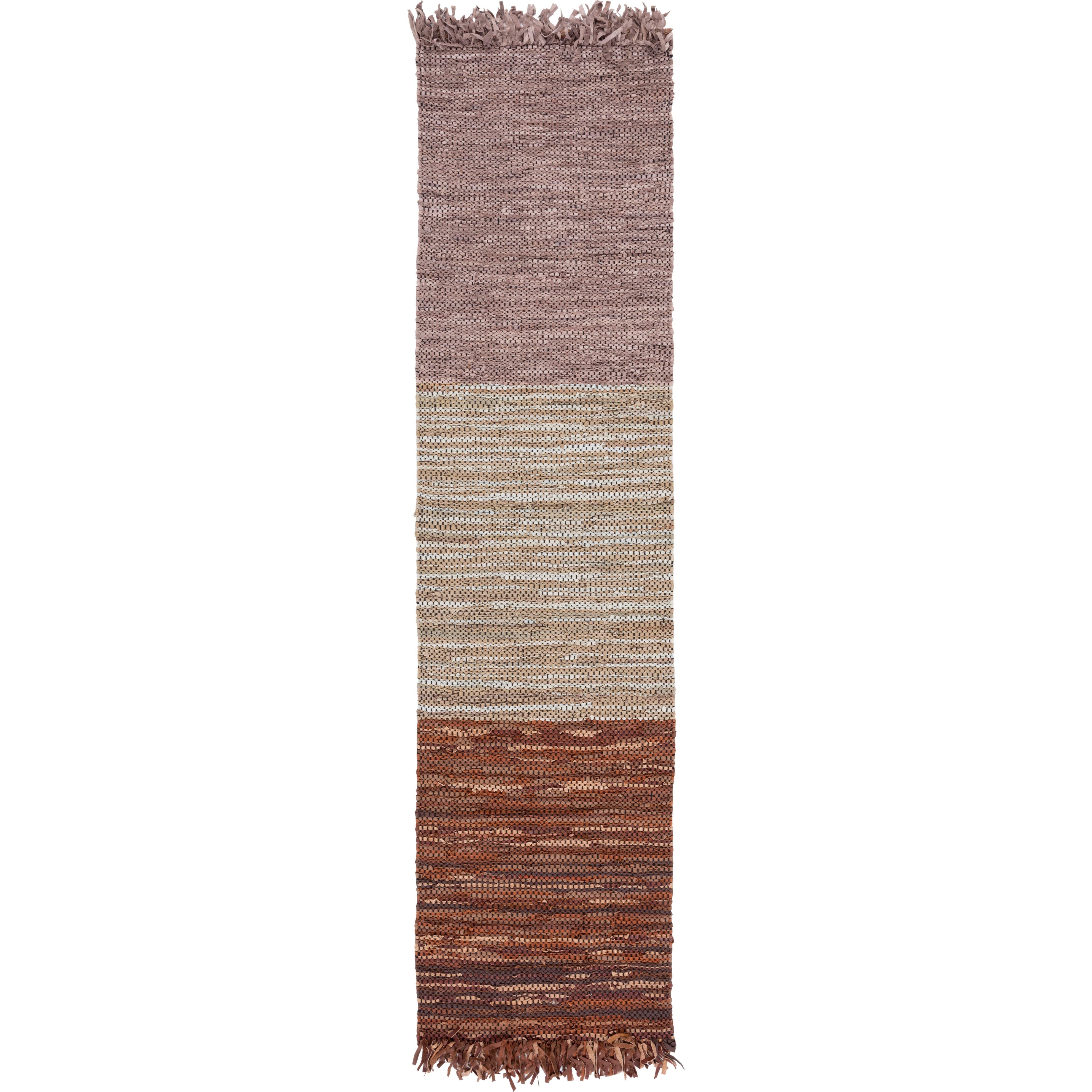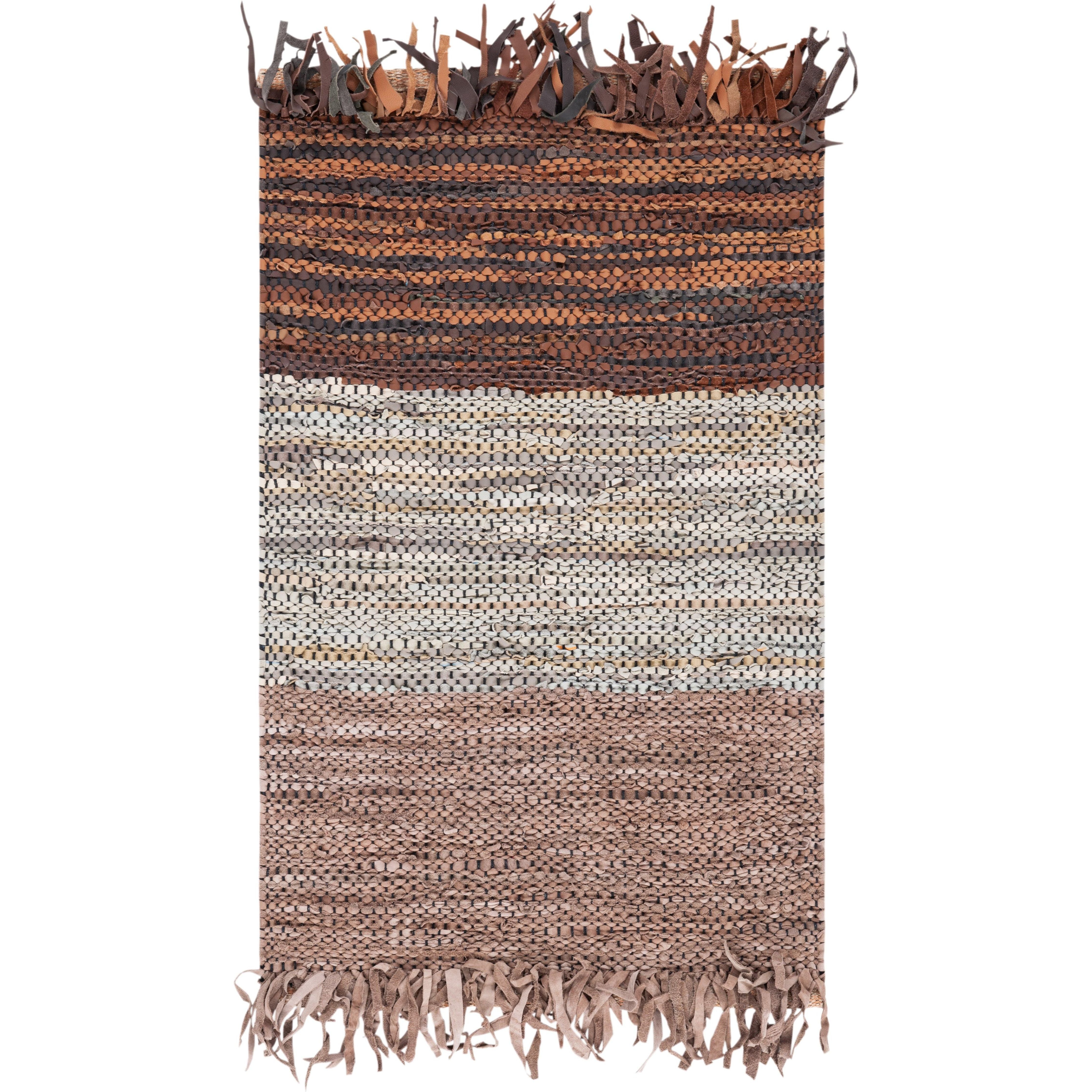 Vintage Leather VTL401P rug, a perfect blend of contemporary style and luxurious comfort. Crafted with genuine leather ribbons in textured flat weave patterns and earthy tones, this rug adds a touch of sophistication to any modern decor. Its sleek design offers a chic twist on traditional cowhide rugs, making it a standout piece in your home.