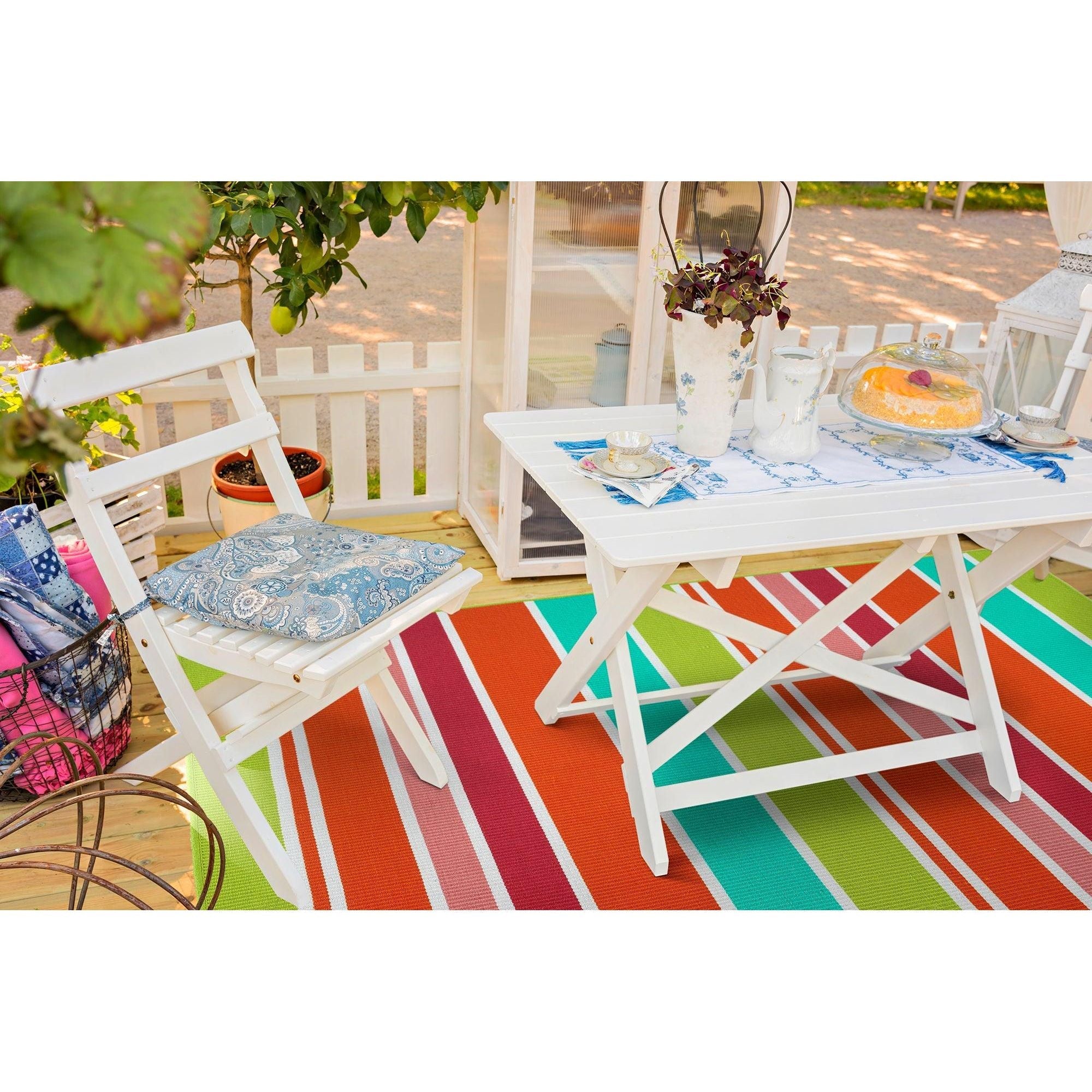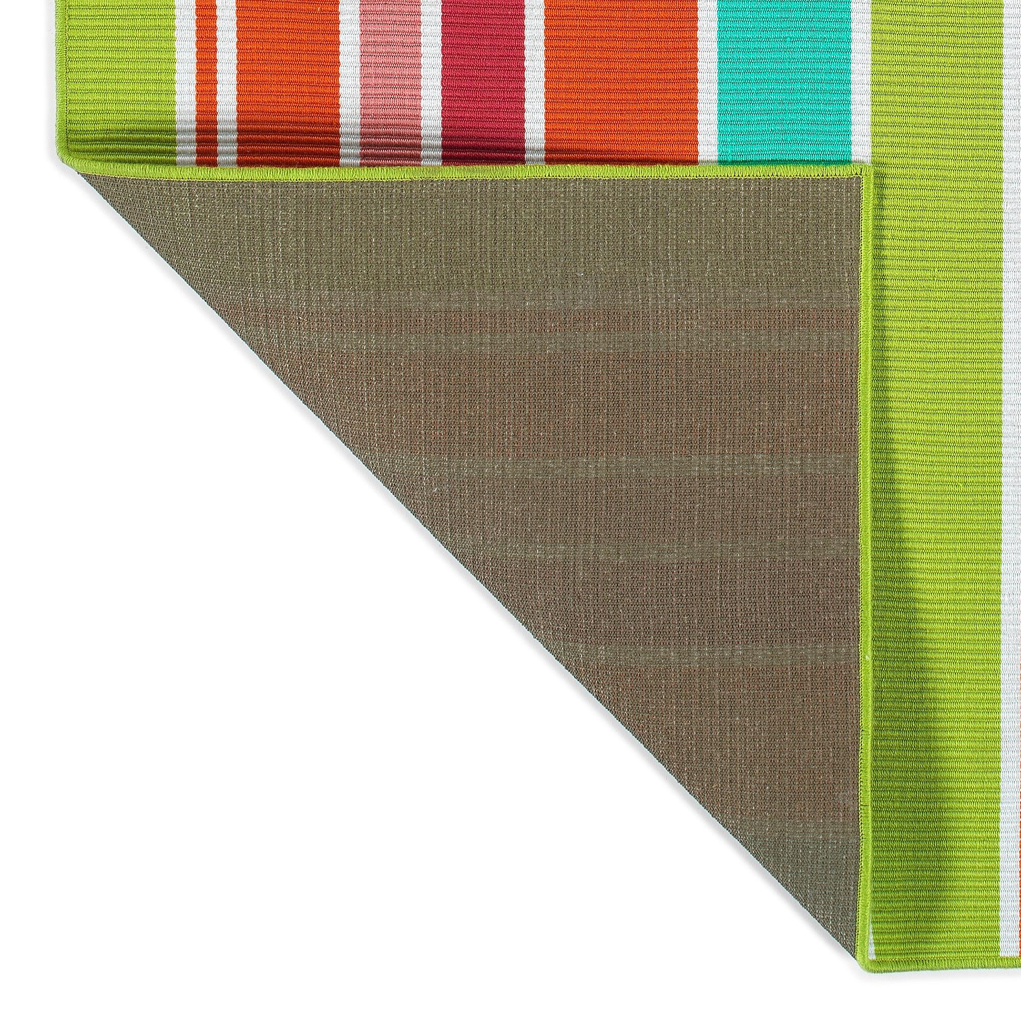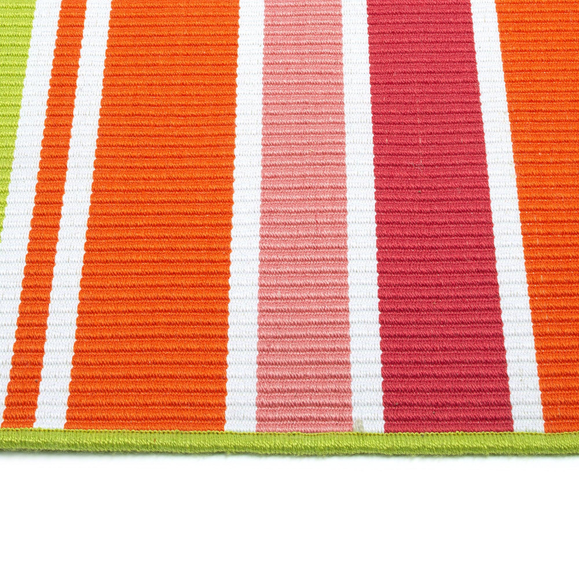 Voavah VOA05 86 Multi rug from the Vaovah collection, a stunning blend of clean lines and ribbed texture detail in a range of vibrant colors. Perfect for adding a touch of color to any space in your home or for enhancing your outdoor area by the pool or patio. These versatile rugs are not only stylish but also quick-drying, ideal for outdoor use. Hand-loomed and hand-finished in India from 100% PET Polyester, these rugs are both beautiful and durable.
