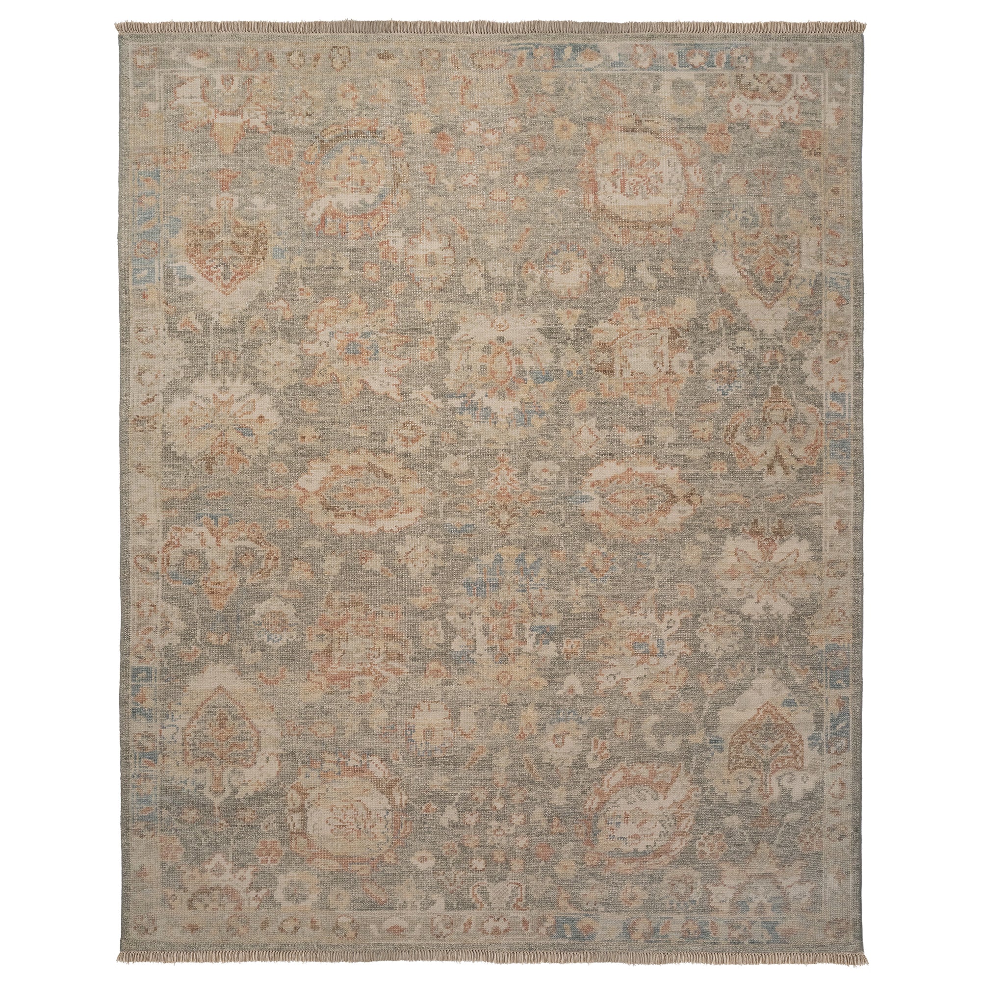 exquisite Wentworth Amara Ash Gray rug, a timeless piece that effortlessly blends classic Ziegler and Ushak designs with a modern twist. Its hushed tones evoke a sense of tranquility and coziness, making it the perfect addition to any space. Crafted from high-quality wool, this hand-knotted collection showcases subtle color gradations that add depth and character to your decor.
