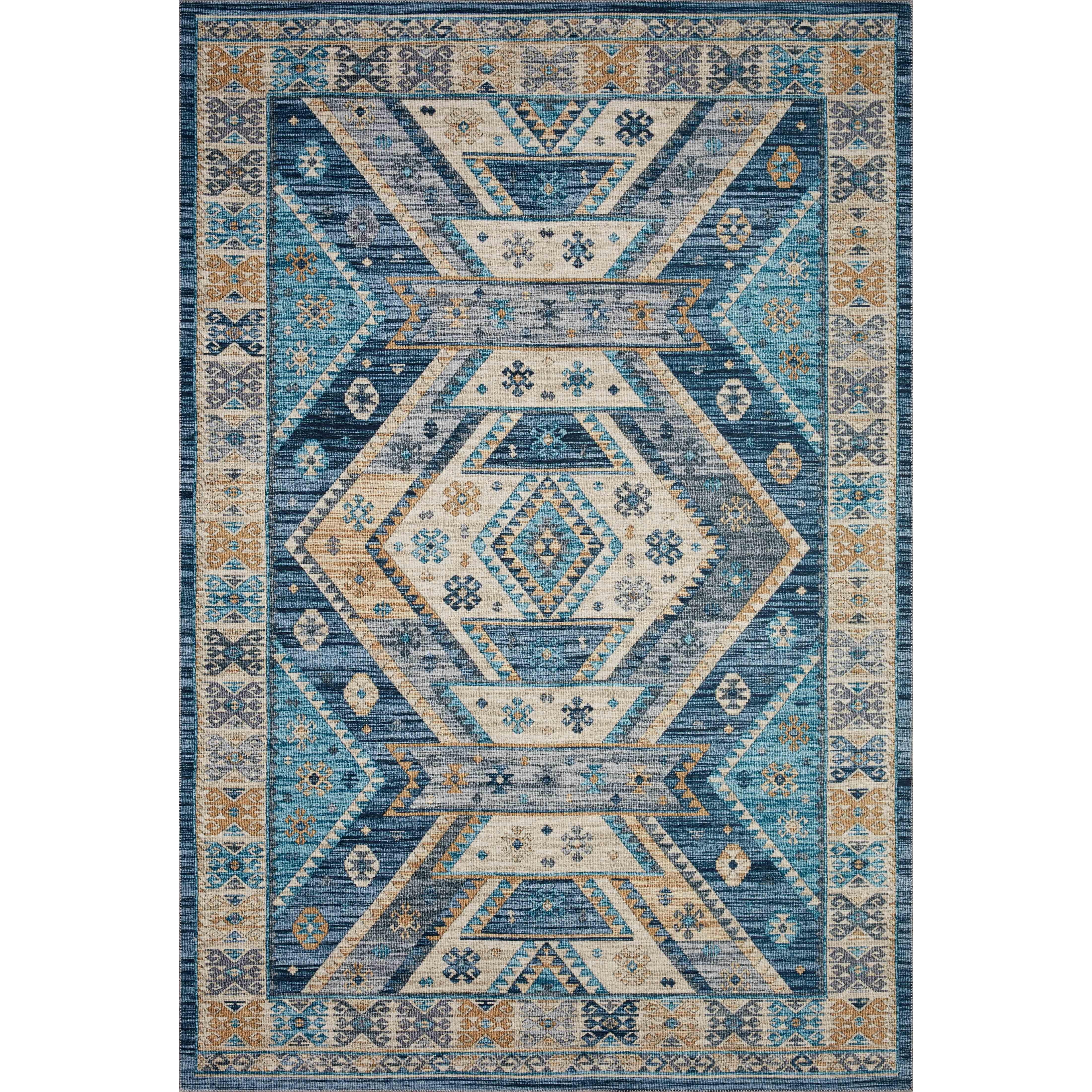 stunning Zion Zio 02 Ocean Gold rug from the Zion Collection. Drawing inspiration from traditional Turkish and Persian kilims, this rug combines classic design with a southwest flair. Crafted with a 100% polyester pile, it features intricate printed designs that mimic the look of high-end rugs without the hefty price tag. Perfect for adding a touch of elegance to any room, the low-pile construction offers a smooth surface underfoot and makes it a breeze to clean with regular vacuuming. Elevate your space with the timeless beauty and affordable luxury of the Zion Zio 02 Ocean Gold rug today.